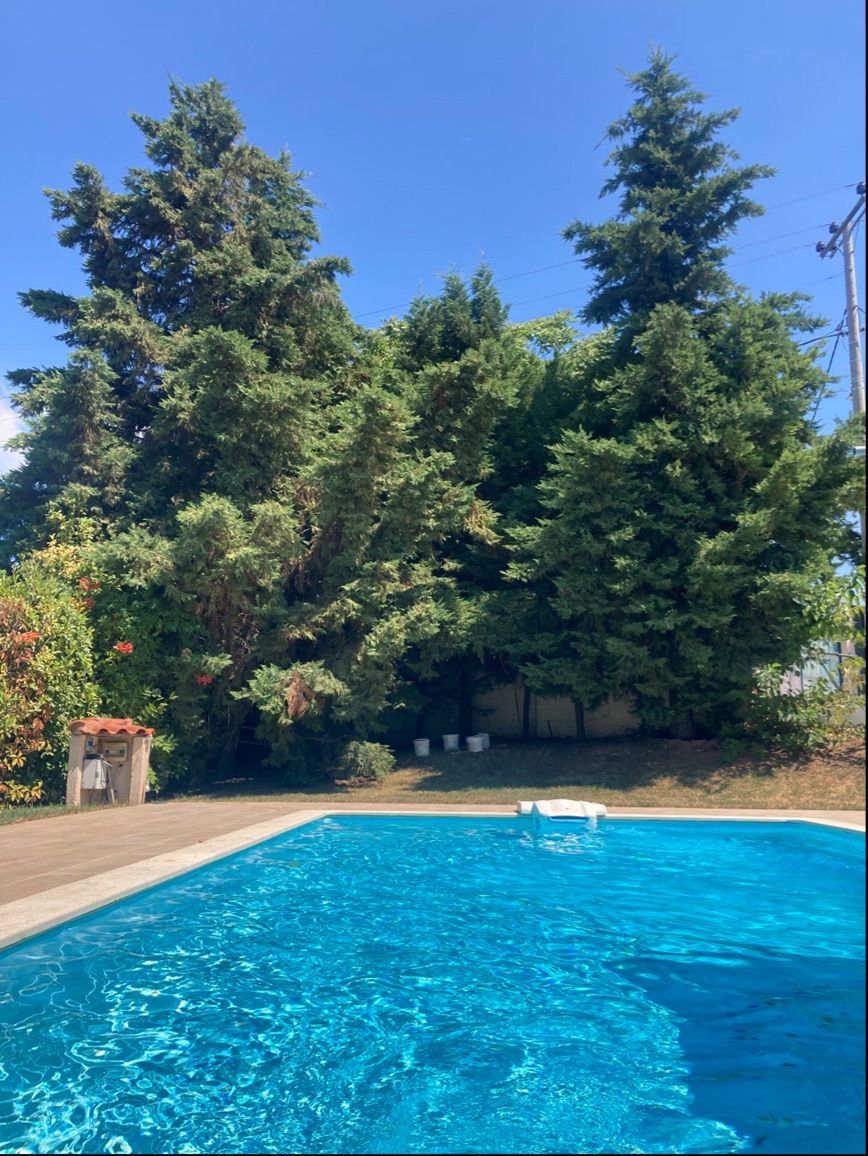 Κάθε όροφος διαθέτει πόρτα ώστε να έχει την αυτονομία του. Επικοινωνούν και με εσωτερική και με εξωτερική σκάλα και με ασανσέρ. Διαθέτει πισίνα με φωτισμό και αυτόματο σύστημα καθαρισμού. Διαθέτει επίσης μεγάλο κήπο με γκαζόν, και δέντρα όπως πλατάνια, μουριές, κλήματα, καλλωπιστικά φυτά και λέιλαντ περιμετρικά στην περίφραξη και στο πίσω μέρος υπάρχουν επίσης οπωροφόρα δέντρα , περιβόλι και Ελαιόδεντρα. Υπάρχει ηλεκτρική πόρτα εισόδου, με συναγερμό και σύστημα ενδοεπικοινωνίας μεταξύ των ορόφων. Στον εξωτερικό χώρο υπάρχει στεγασμένος χώρος μπάρμπεκιου με χτιστό ξύλο φούρνο, ψησταριά , βρύση, στεγασμένο πάρκινγκ τριών θέσεων, γεώτρηση, γεννήτρια σε στεγασμένο χώρο καθώς και εξωτερική αποθήκη κήπου.