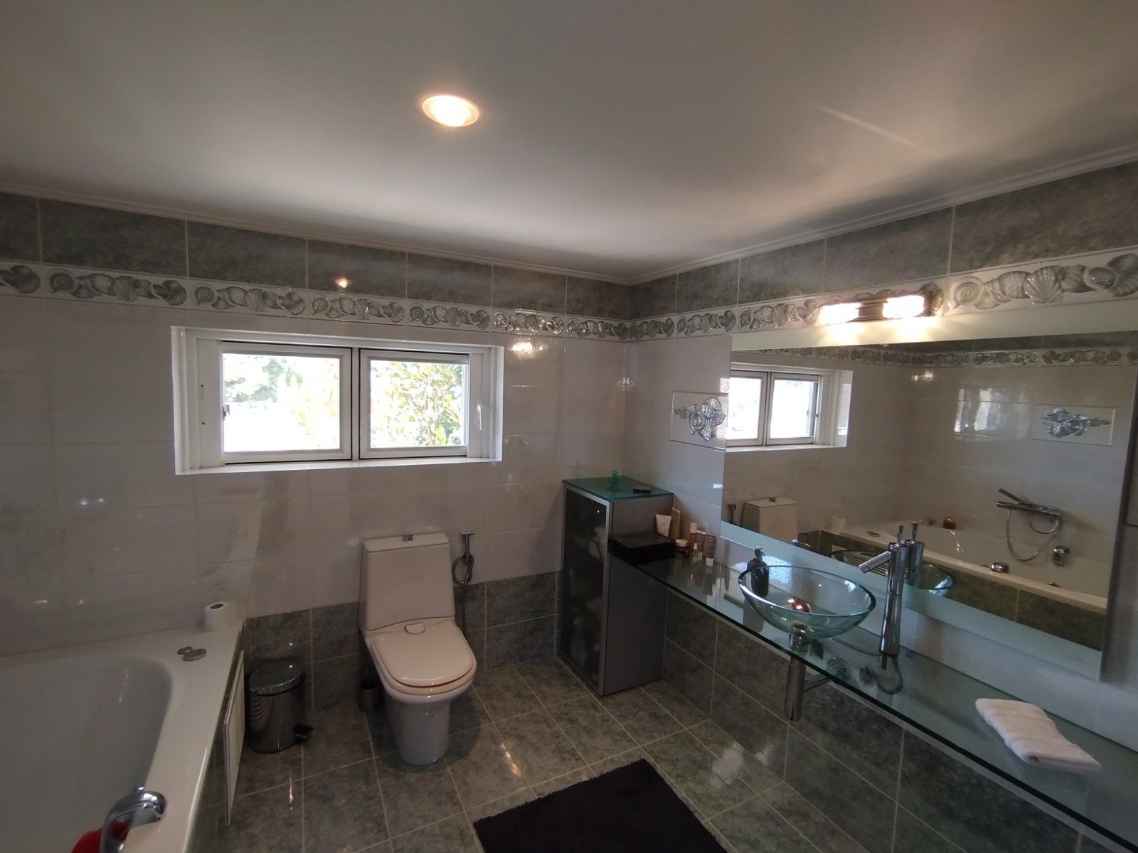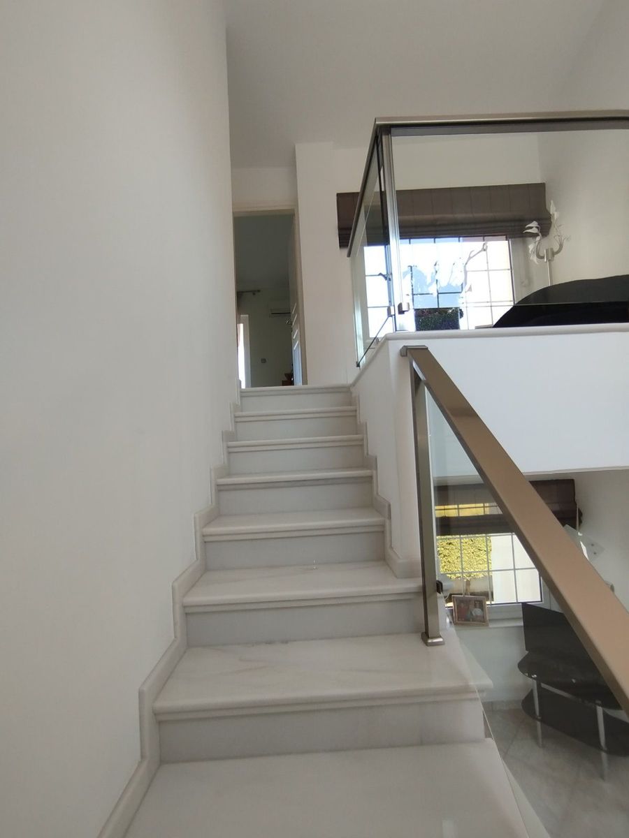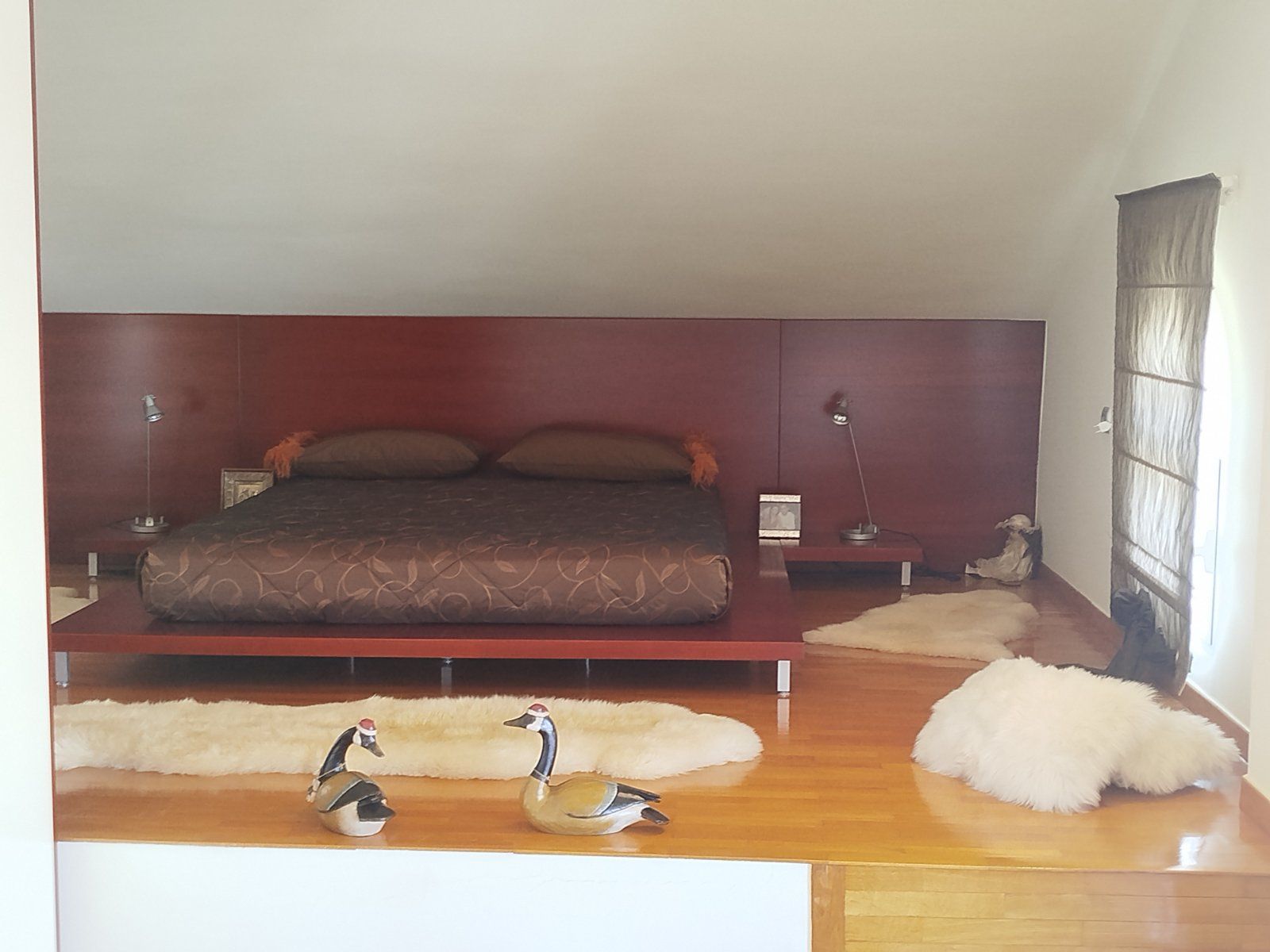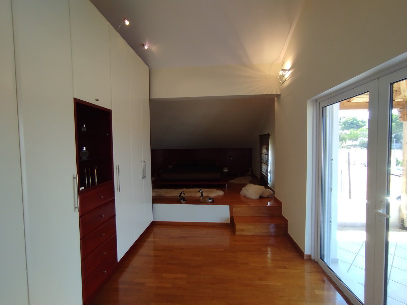 Σε υπερυψωμένο τμήμα της οικίας βρίσκεται η πρώτη κρεβατοκάμαρα με μπάνιο υψηλής αισθητικής και τζακούζι. Ανεβαίνοντας στον όροφο, είναι 3 κρεβατοκάμαρες, η κάθε μια με ξεχωριστό μπαλκόνι και θέα θάλασσα, 1 μπάνιο και χώρος χαλάρωσης με τζάκι.