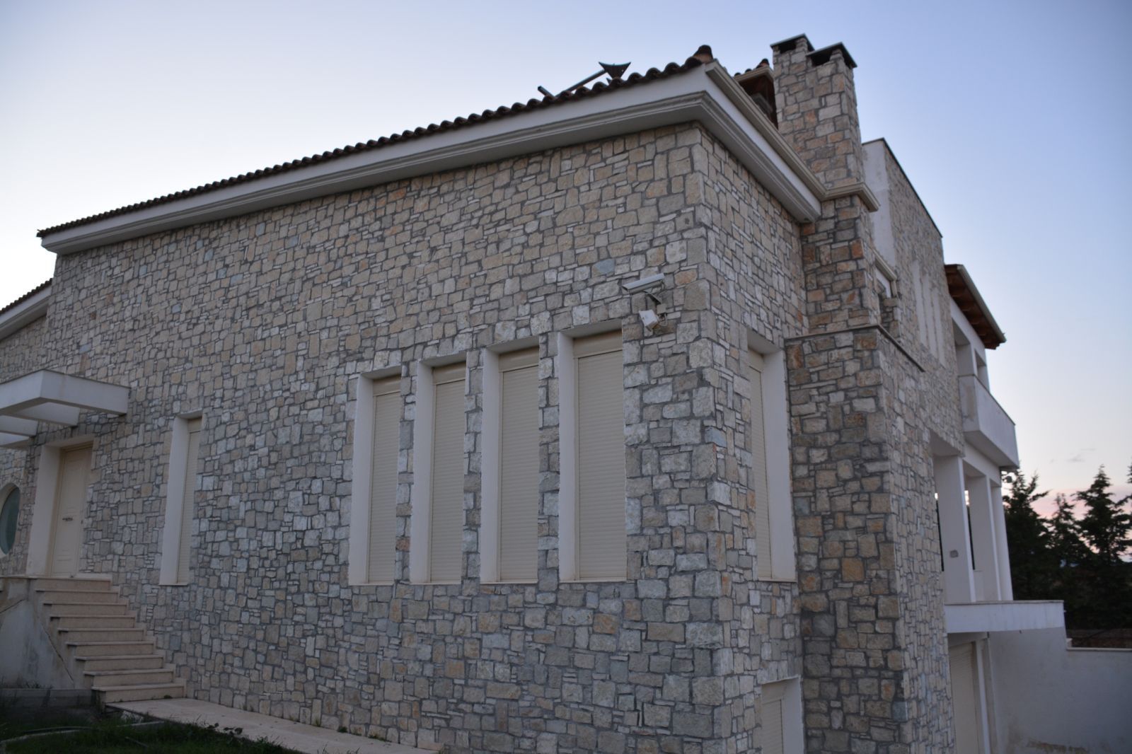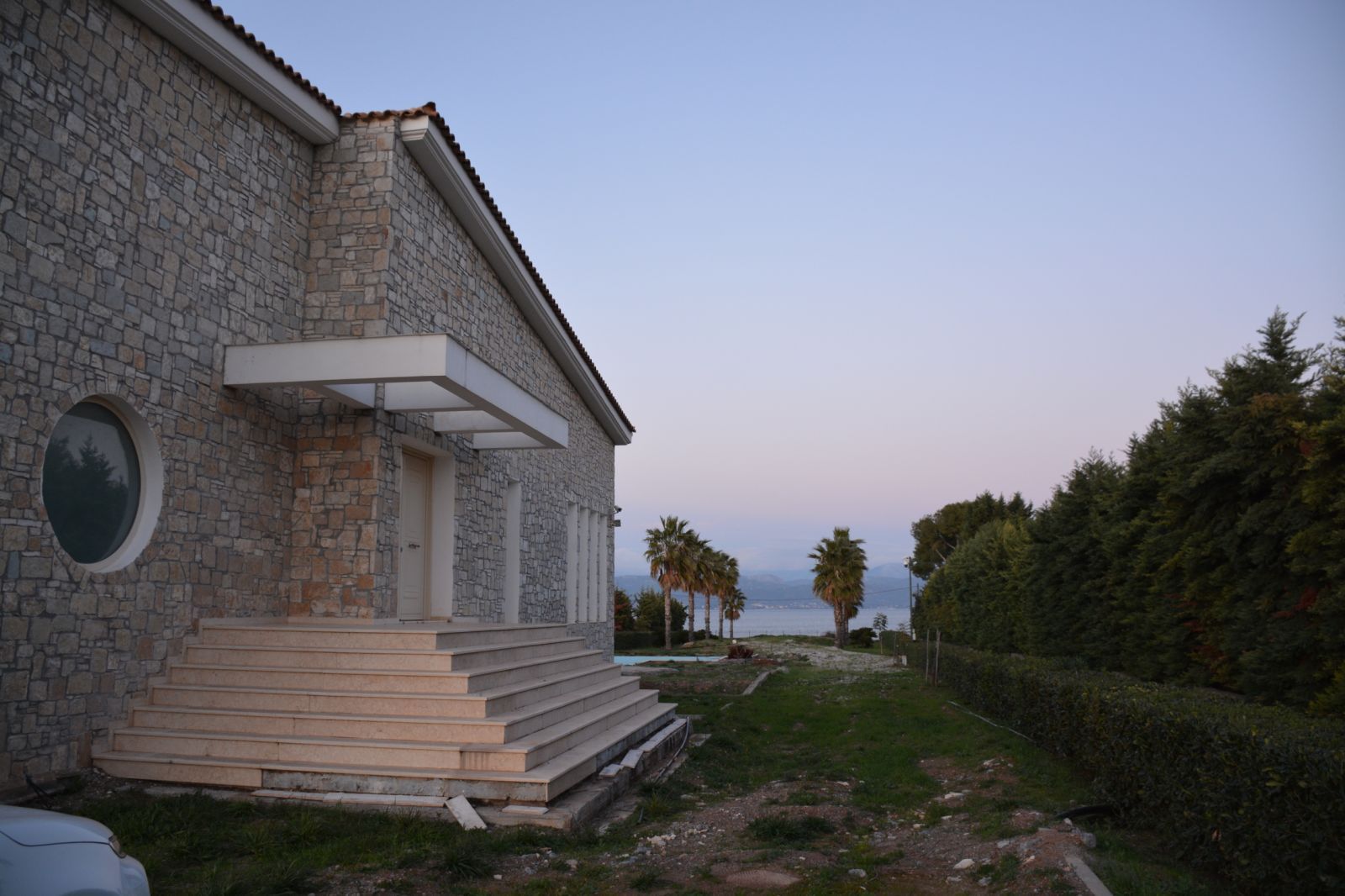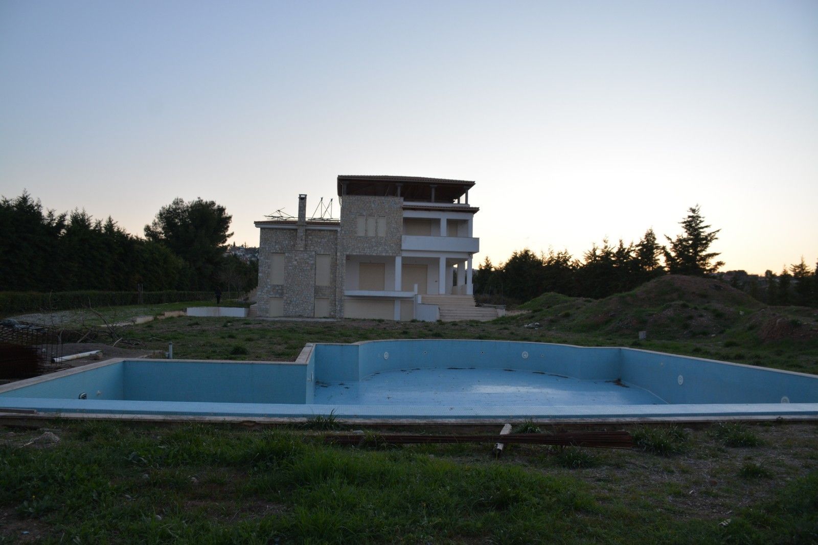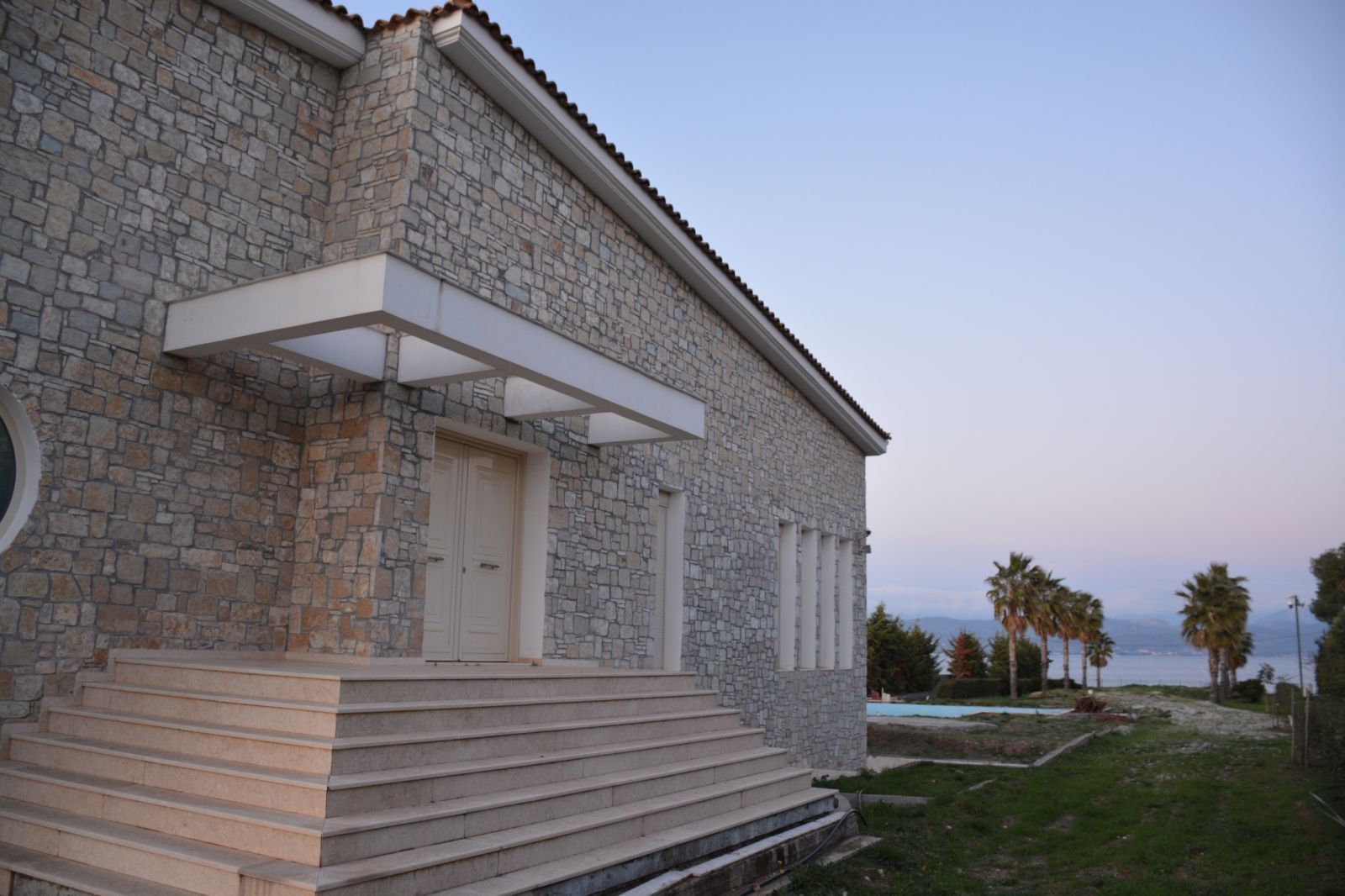 σύστημα κλιματισμού, το οποίο σε περίπτωση έκτακτης ανάγκης ή βλάβης στην αντλία, μπορεί να εξακολουθήσει να δουλεύει σαν κλασική μονάδα κλιματισμού. Ο εξωτερικός χώρος αποτελείται από κλειστό μπάρμπεκιου με φούρνο και τραπέζια για την ετοιμασία του φαγητού, που βρίσκονται κοντά στην εξωτερική πισίνα, υπάρχει επίσης σπίτι του κηπουρού και διαθέτει μια υπόγεια δεξαμενή 90 κυβικών μέτρων γλυκού νερού για το πότισμα των κήπων. Το νερό στη δεξαμενή ρέει από γεώτρηση, βάθους 240 μέτρων όπου το πότισμα του κήπου και το γέμισμα της δεξαμενής ελέγχονται μέσω υπολογιστή. Το λογισμικό του υπολογιστή για τη λειτουργία του ποτίσματος και του εξοπλισμού του, φτιάχτηκε έπειτα από ειδική παραγγελία, για το συγκεκριμένο κτήμα, λαμβάνοντας υπόψη τις ιδιαιτερότητες του κτήματος και του εξοπλισμού που χρησιμοποιείται σε αυτό το σύστημα . Έτσι μέσω του διαδικτύου, με τη βοήθεια αισθητήρων, μπορεί κάποιος να δει το κτήμα, σε πραγματικό χρόνο και σε οποιαδήποτε τοποθεσία βρίσκεται, τόσο εντός όσο και εκτός Ελλάδας, και ειδικότερα, μπορεί να παρακολουθήσει:την υγρασία, τη θερμοκρασία εδάφους και αέρα, την ποσότητα των λιπασμάτων και κάτω από ποια φυτά ρίχτηκαν αυτά τα λιπάσματα, την ακριβή ροή του νερού, ανά ημέρα, και στα οκτώ δίκτυα ποτίσματος, τη στάθμη νερού στη γεώτρηση και στην πισίνα κ.α. Ο κήπος γύρω από τη βίλα, εκτός από τα καλλωπιστικά φυτά και τους φοίνικες, διαθέτει μία μεγάλη ποικιλία οπωροφόρων δέντρων: πορτοκάλια, μανταρίνια, λεμόνια, ροδάκινα, βερίκοκα, ποικιλίες σταφυλιών, μούρα, ρόδια, χουρμάδες, μήλα, αχλάδια, δαμάσκηνα, κυδώνια, κ.α. Το κτήμα γειτνιάζει με την θαλάσσια ακτογραμμή που έχει ήσυχη, αμμώδη παραλία και πάνω σ΄ αυτήν υπάρχει μια προβλήτα από μπετόν που κατεβαίνει στη θάλασσα, με δύο μεταλλικές ράγες και που χρησιμοποιείται για την ανέλκυση και την καθέλκυση σκαφών και κότερων αναψυχής. Το παρόν ακίνητο βρίσκεται σε μια οικολογικά καθαρή ζώνη, μακριά από μεγάλες βιομηχανικές μονάδες και έχει μια πλεονεκτική θέση όσον αφορά την πρόσβαση στα μέσα συγκοινωνίας. Κοντά βρίσκεται και η στάση του προαστιακού σιδηροδρομικού σταθμού Αθήνα - Χαλκίδα ενώ στην Αθήνα καθώς και στο αεροδρόμιο μπορείτε να φτάσετε με το αυτοκίνητο σε λιγότερο από 1ώρα μέσω της Εθνικής οδού. Σε πολύ κοντινή απόσταση υπάρχει ο Ιππικός Όμιλος Αυλώνας, η προβλήτα με τα κότερα καθώς και ψαροταβέρνες, καφετέριες, σούπερ μάρκετ, φούρνος κ.α.