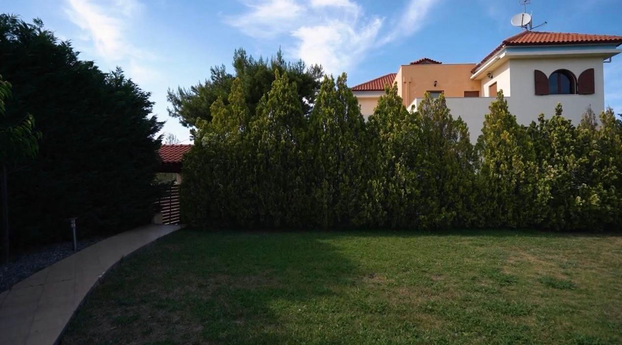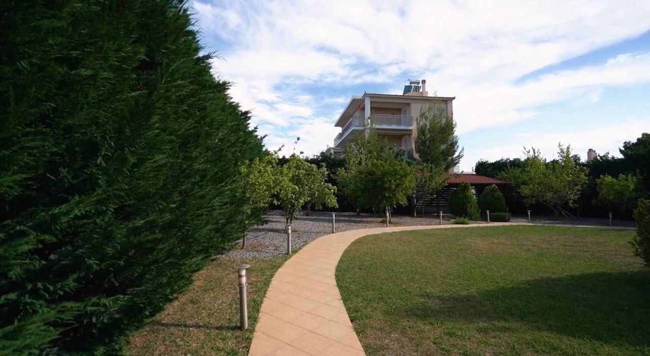 ΔΗΛΕΣΙ ΠΛΑΚΑ ΠΩΛΕΙΤΑΙ ΒΙΛΑ απαράμιλλης αισθητικής τελειότητας 562 τ.μ σε οικόπεδο 1450 τ.μ σε πολύ ωραία και ήσυχη περιοχή και σε απόσταση από την θάλασσα μόλις 150 μέτρα. Το παρόν ακίνητο αποτελειται από 7 υπνοδωματια, 4 μπάνια, 1 μεγαλο σαλόνι με τζακι και 1 ευρύχωρη κουζινα. Διαθέτει επίσης πόρτα ασφάλειας, κουφώματα αλουμινίου με διπλά τζάμια, σίτες, κλιματισμό, ενδοδαπέδια θερμανση, ηλιακό θερμοσίφωνα, συναγερμό, τριφασικό ρεύμα, εσωτερική σκάλα, σοφίτα, play room και μεγαλες βεραντες. Ο εξωτερικός χώρος της βίλας ειναι καλυμμένος περιμετρικά από ψηλά κωνοφόρα δένδρα leylandii που παρέχουν ιδιωτικοτητα ενώ στο κέντρο του κήπου υπάρχει πισίνα 86 τ.μ για στιγμές χαλάρωσης. Υπάρχει επίσης διαμορφωμένος κήπος με γκαζόν και αυτοματο πότισμα καθώς και συνθέσεις στα παρτέρια από πολύχρωμα καλλωπιστικά φυτά.Στον προαύλιο χώρο υπάρχει ξεχωριστό κιόσκι με χώρο μπάρμπεκιου και άμεση πρόσβαση στον κήπο καθώς και δυο θέσεις στάθμευσης. Η πολυτελής κατασκευή ειναι ένας χώρος σχεδιασμένος για άνετη διαβίωση, ένας τέλειος συνδυασμός ιδιωτικοτητας και άνεσης, καθώς και ένα ιδανικό μέρος τόσο για διακοπές όσο και για μόνιμη κατοικία.
