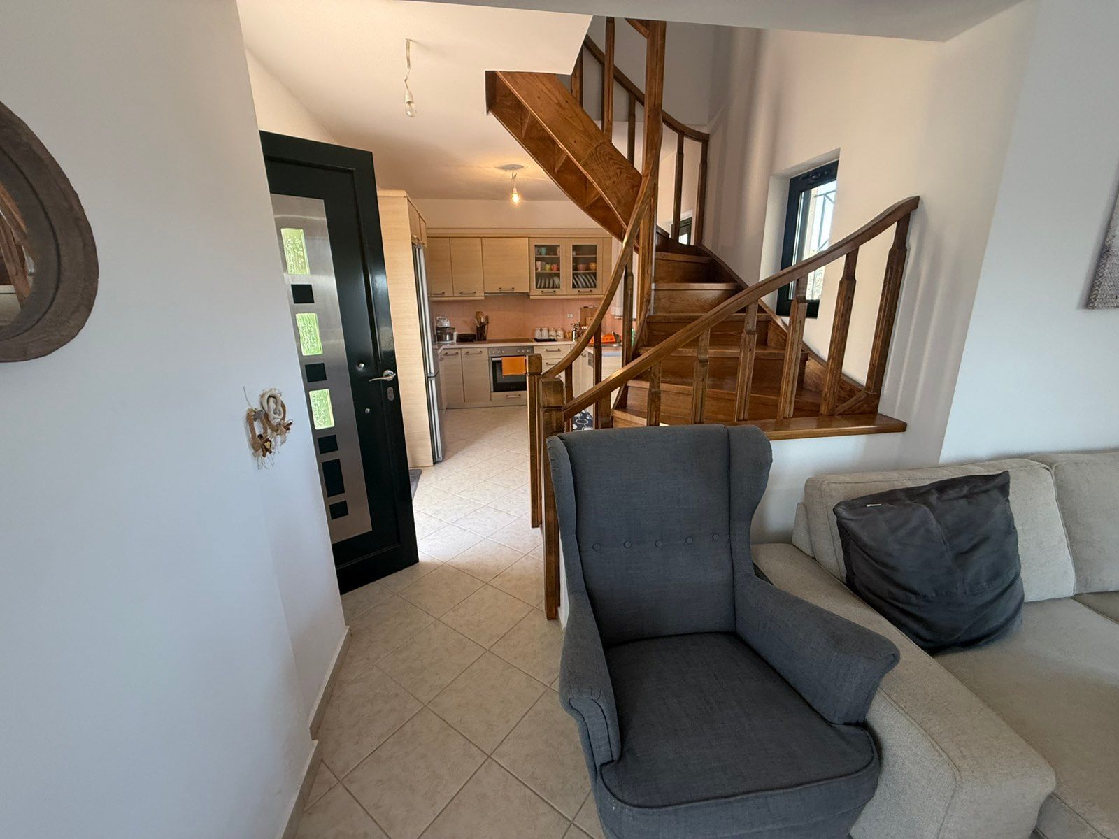 Πωλείται μεζονέτα 3 επιπέδων στη Μαγούλα Ερέτριας, τιμή €195.000. Η κατοικία κατασκευής 2009 διαθέτει υπερυψωμένο ισόγειο και 1ο όροφο, συνολικού εμβαδού 122,29 τ.μ., σε οικόπεδο 1.100 τ.μ., σε ήσυχη περιοχή μέσα στο πράσινο, μόλις 2 χλμ από το κέντρο της Ερέτριας. Το ισόγειο (44,27 τ.μ.) αποτελείται από ευρύχωρο σαλόνι με τζάκι, πλήρως εξοπλισμένη κουζίνα και δύο μπαλκόνια, το μπροστά με βόρειο προσανατολισμό και θέα βουνού και το πίσω με νότιο προσανατολισμό με εκπληκτική θέα σε ελαιόδεντρα και θάλασσα. Ο 1ος όροφος (33,75 τ.μ.) περιλαμβάνει δύο υπνοδωμάτια με a/c, ένα μπάνιο και ένα μπαλκόνι με νότιο προσανατολισμό και θέα σε ελαιόδεντρα και θάλασσα. Υπάρχει ανεξάρτητο ημιυπόγειο διαμέρισμα (44,27 τ.μ.) με ξεχωριστή είσοδο, σαλόνι με κουζινάκι, υπνοδωμάτιο και μπάνιο, ιδανικό για επισκέπτες ή ενοικίαση. Η μεζονέτα διαθέτει πόρτα ασφαλείας, εσωτερική σκάλα, πάρκινγκ με γκαραζόπορτα, τζάκι, κλιματισμό, βεράντα και δυνατότητα διαμόρφωσης κήπου. Το ακίνητο διατίθεται επιπλωμένο και βρίσκεται σε οικιστική ζώνη με προσανατολισμό βορειοανατολικό, προσφέροντας ηρεμία, ιδιωτικότητα και μαγευτική θέα. Τιμή ανά τ.μ.: €1.585. Ενεργειακή κλάση Β+ (50%-75%). Μια μοναδική ευκαιρία για μόνιμη κατοικία ή εξοχική χρήση που συνδυάζει φύση, άνεση και υψηλή ποιότητα ζωής.Οι πληροφορίες της παραπάνω αγγελίας βασίζονται σε στοιχεία που έχει δώσει ο εντολέας - ιδιοκτήτης στο γραφείο μας. Τυχόν τυπογραφικά λάθη ή η αλλαγή της τιμής οφείλονται αποκλειστικά στον ίδιο.
